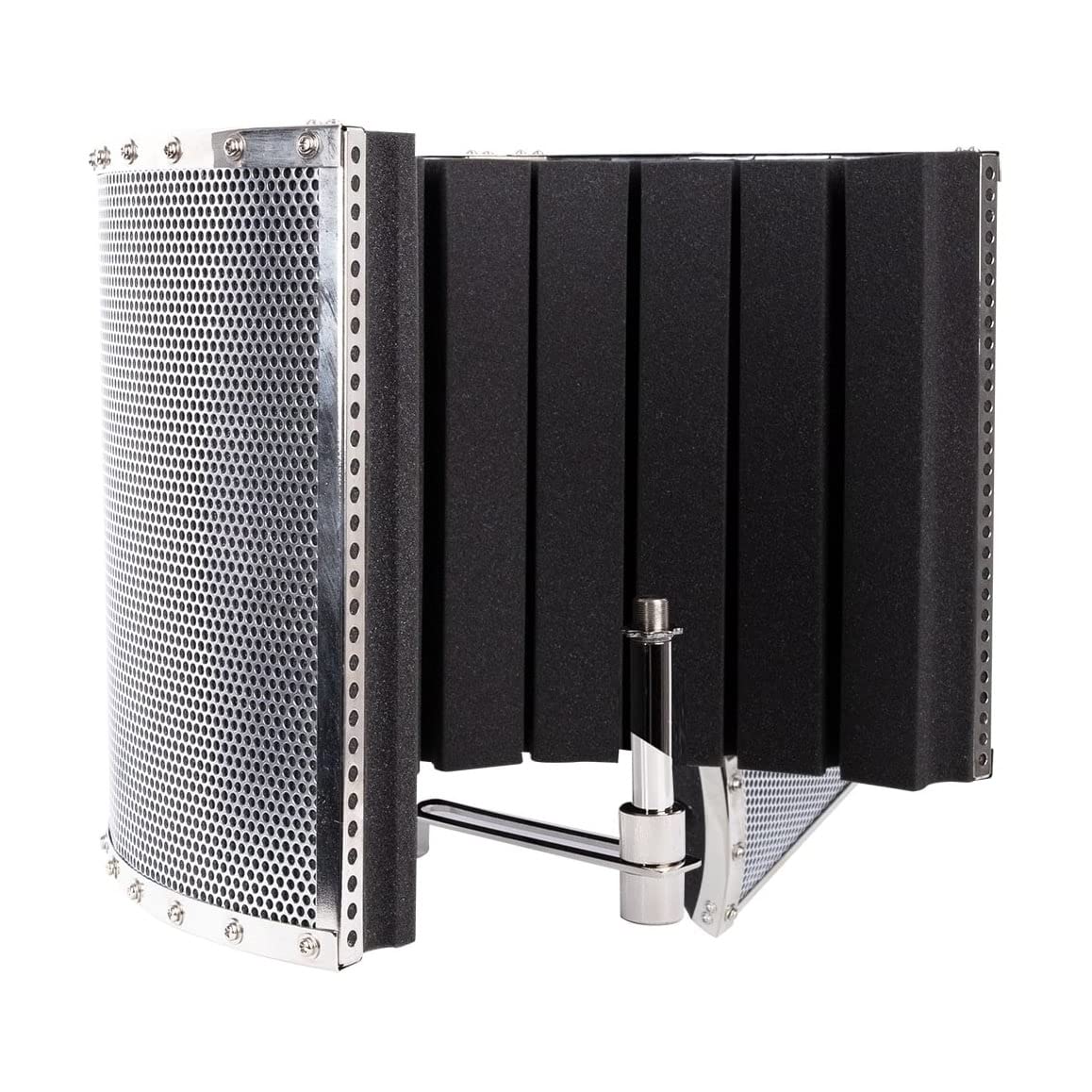 PF32 MKII is a latest acoustic diffuser screen from Alctron. Its outstanding features are the simple structure and easy application. Because of its light weight, it becomes a portable recording accessory everywhere. The screen is fixed by a metal frame and wood or aluminum panel. So it isn't able to come out from the frame easily. And then the frame is attached to a microphone stand by a clamp. The microphone can be mounted on the top of the mic stand directly. If the mic stand has a boom, it can be hanged on the front of the screen as well. This screen can improve effectively the sound of the acoustic space around the microphone. Therefore, it is an affordable and useful accessory for recording.