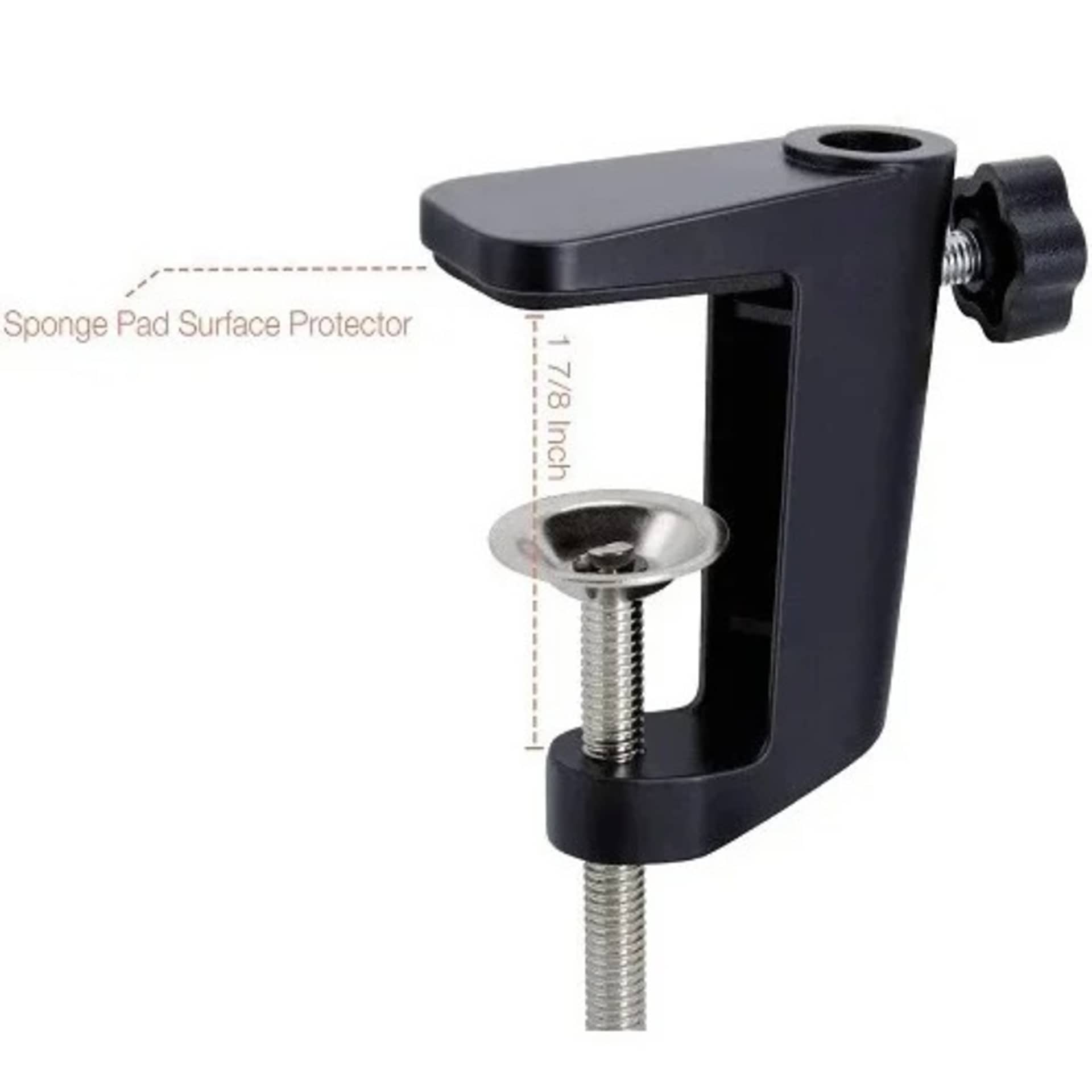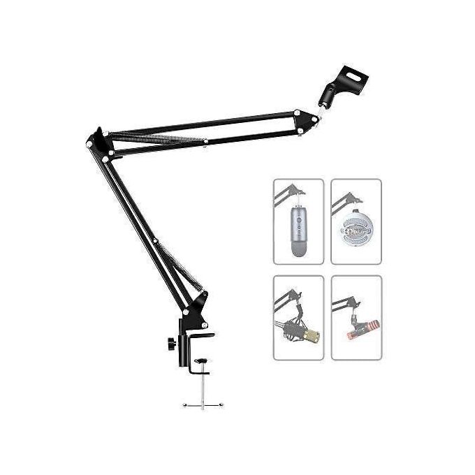 your microphone is held safely and firmly on this scissor arm microphone clip.