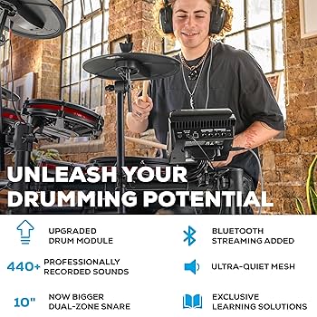 Complete Percussion Experience - Premium 8-piece electronic drum set with ultra-quiet Alesis mesh heads, revolutionary Drum Module with Bluetooth & built-in industry-leading BFD drum sounds