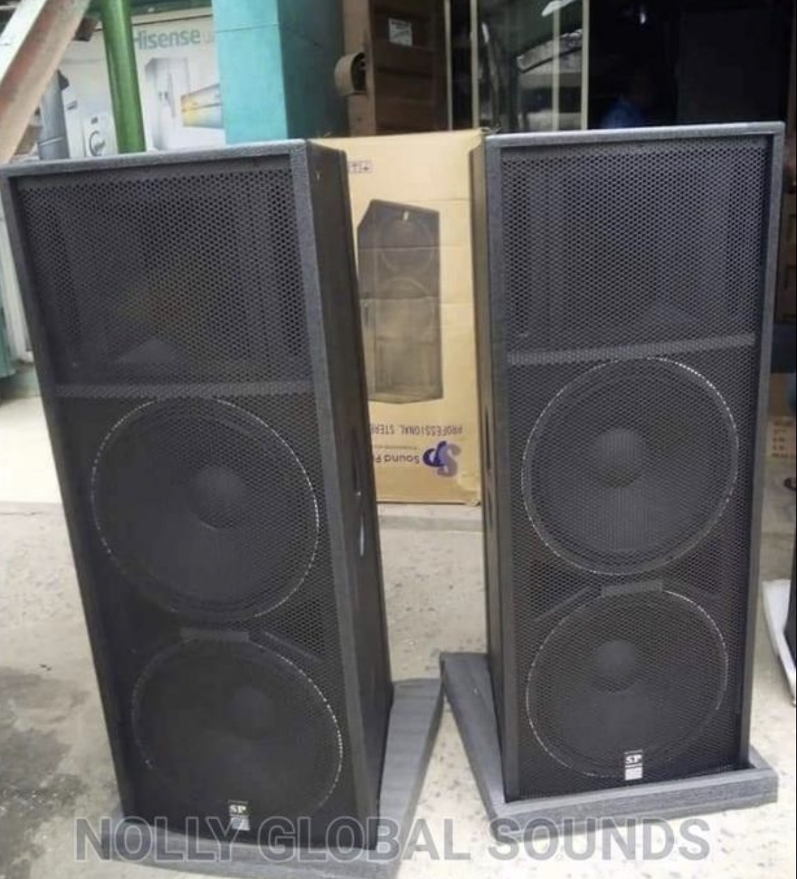 Model:SP-125Type:Dual 15inch 2 way speakerFrequency Range: 45HZ-19KHZSensitivity:98dBImpedance:4 OHMSRMS Power:1500/750W