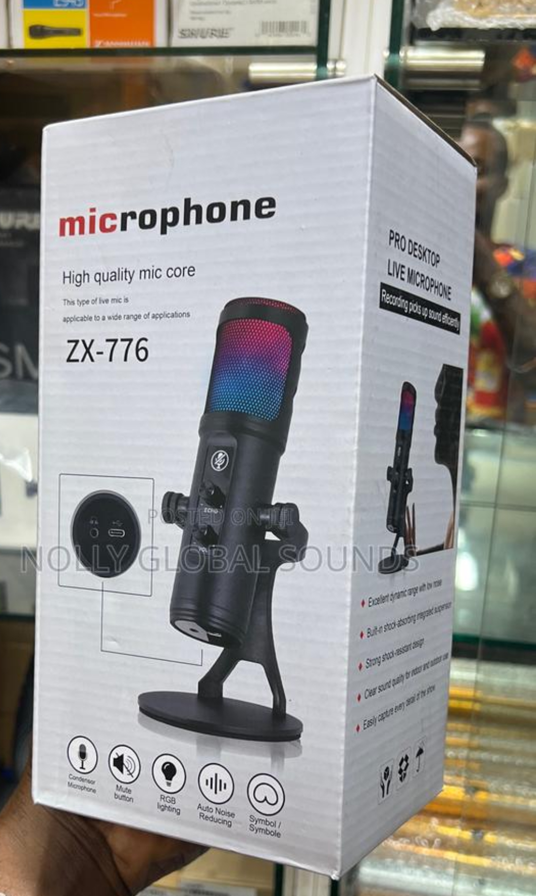 Condenser microphone, Mute button, RGB Lighting, Auto Noise reduction, Symbol/ Symbole.